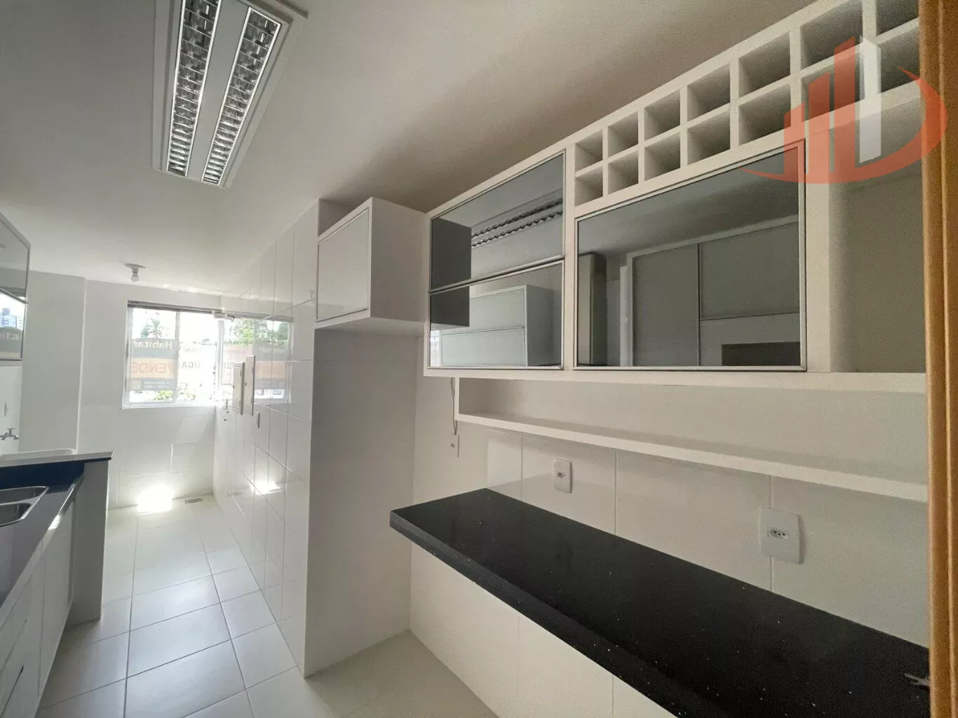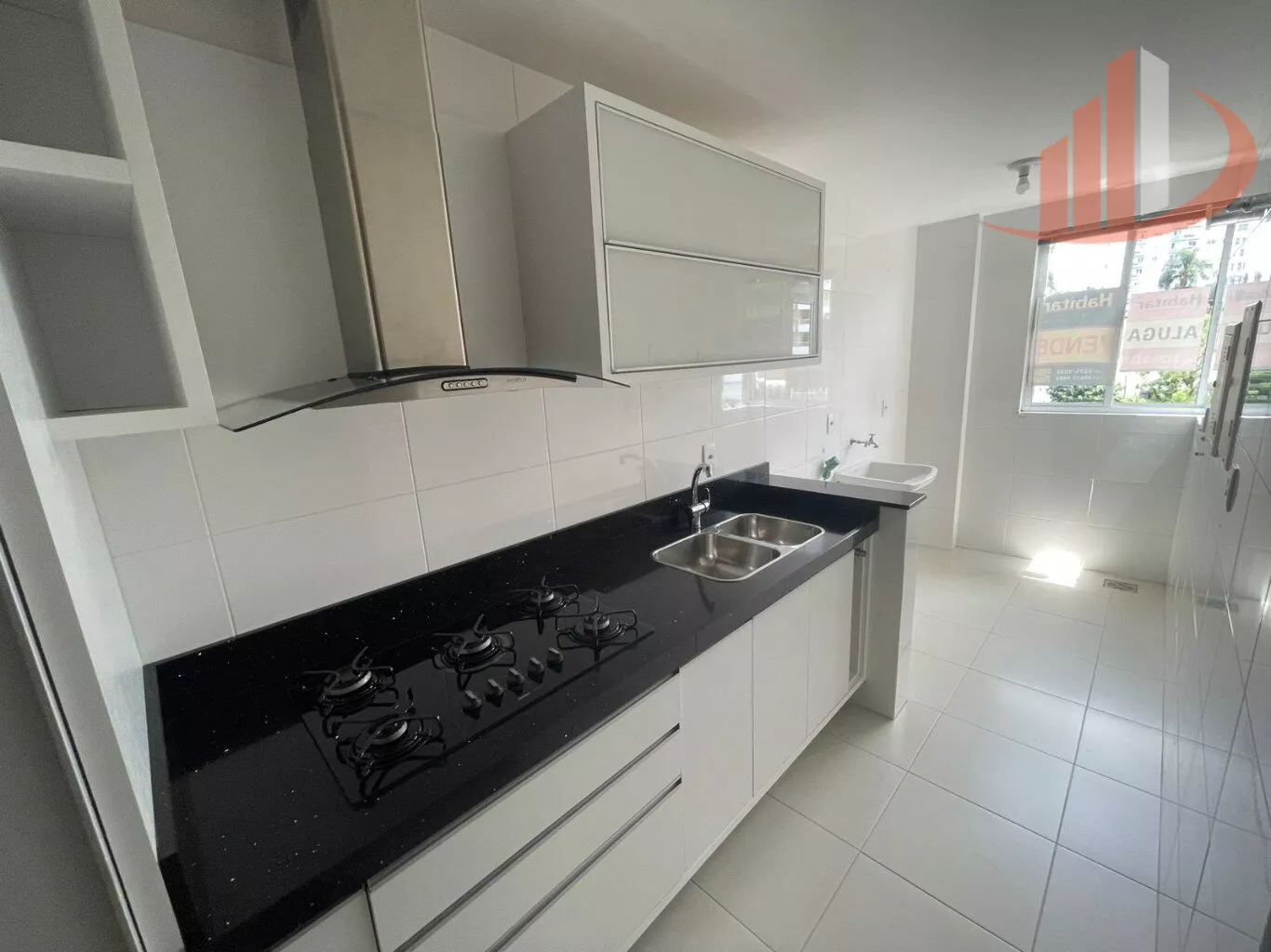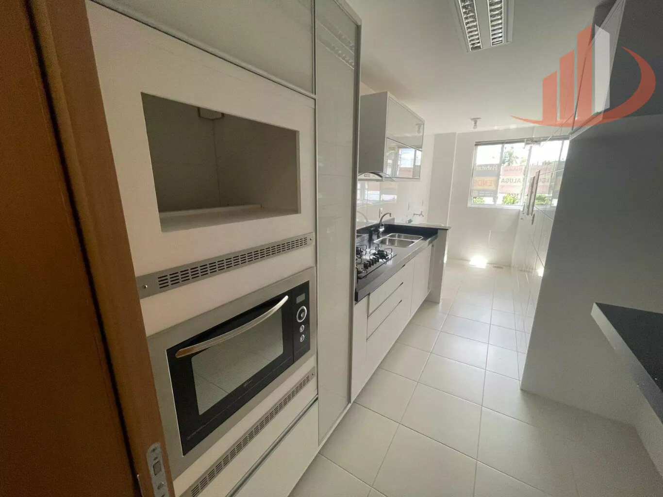 Cozinha planejada, equipada com forno e cooktop;