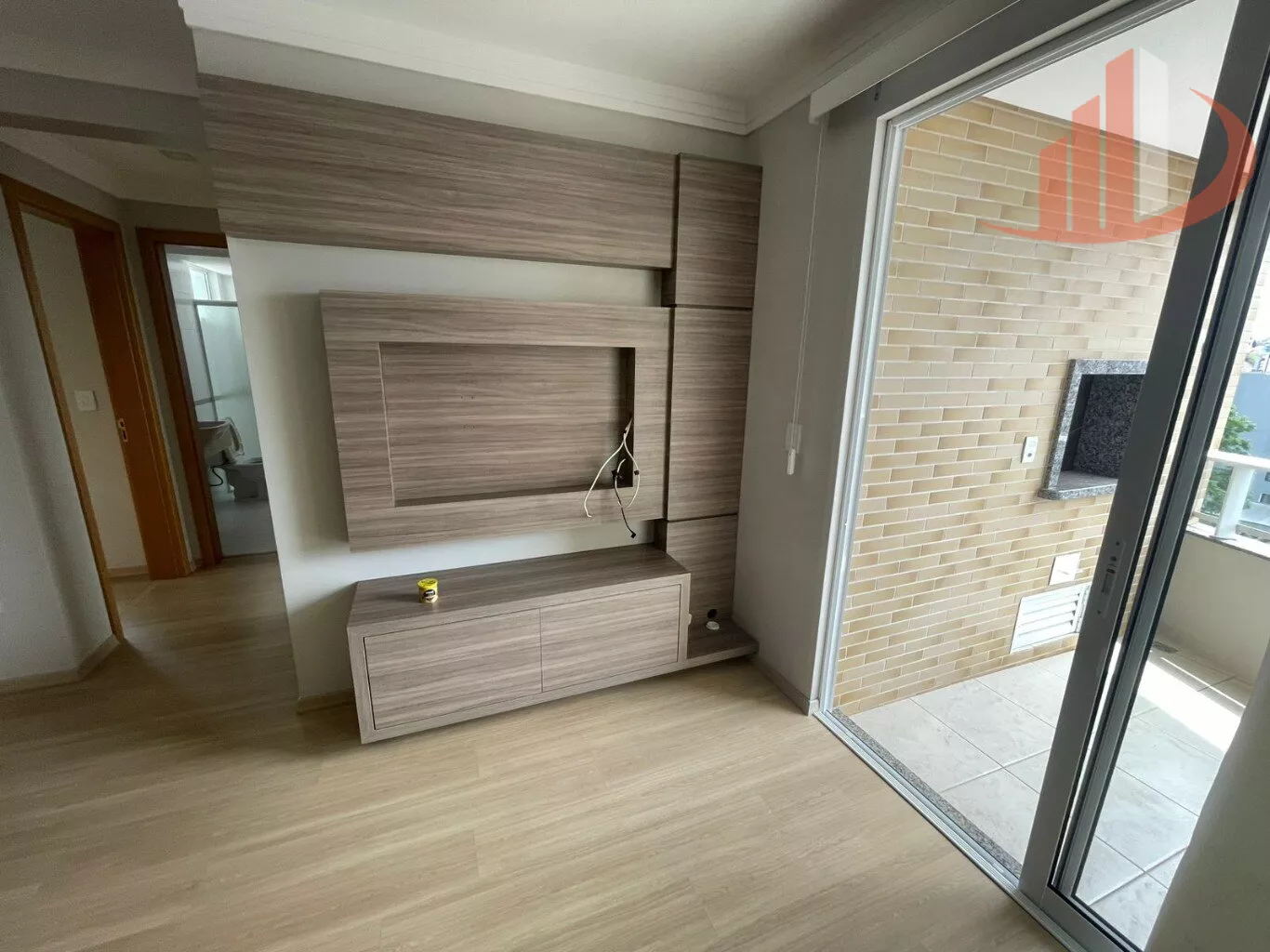 Sala de estar e jantar com painel de TV planejado;
