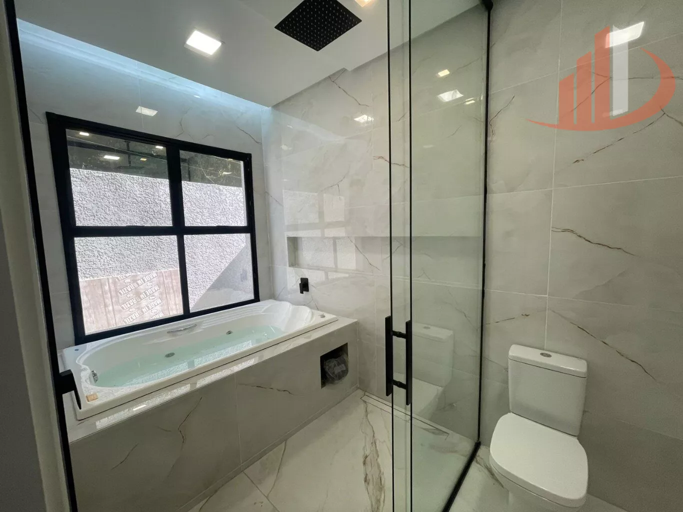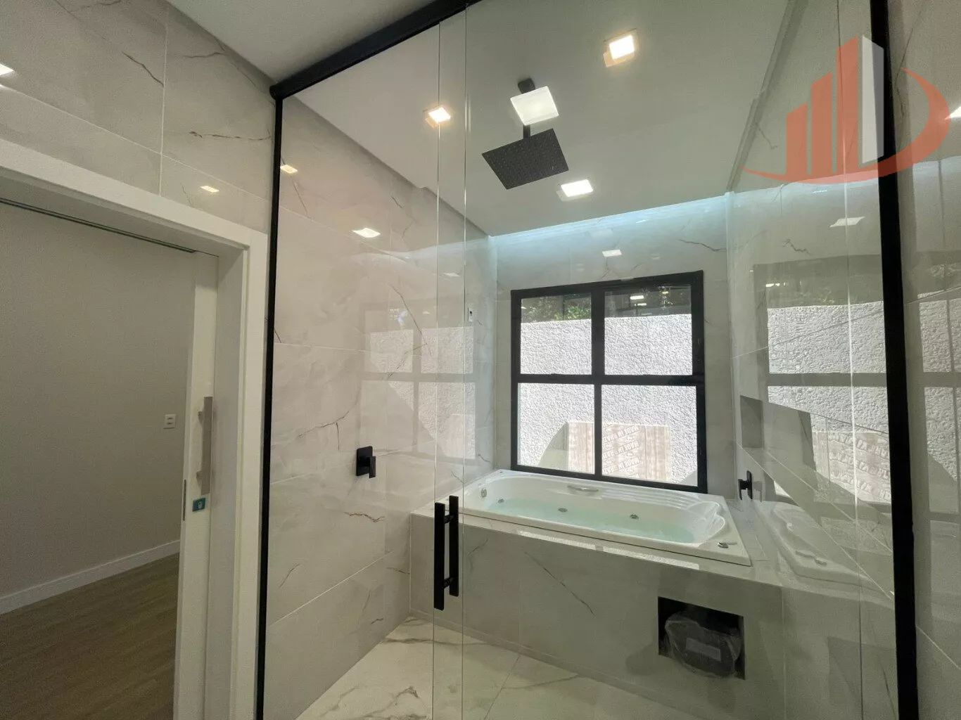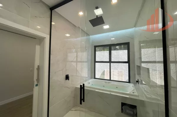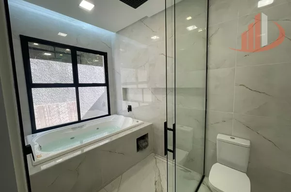 01 suíte master com closet espaçoso e banheiro amplo com hidromassagem dupla, iluminação e aquecimento