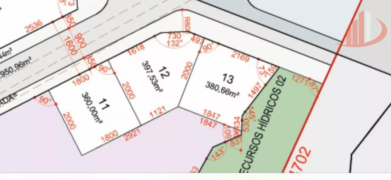 Cada terreno possui 18m de frente.