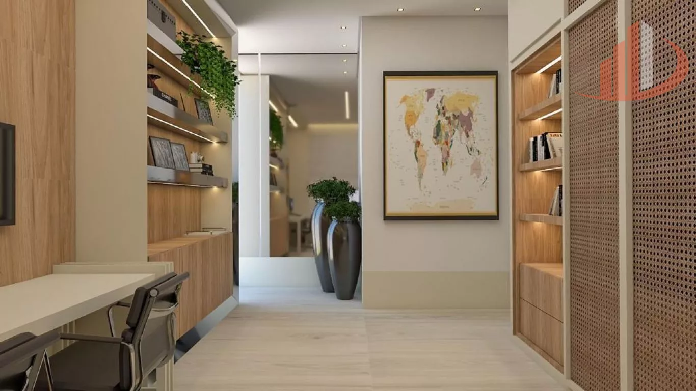 Com quatro suítes, piscina com previsão de aquecimento, janelas antirruídos nos dormitórios, tem previsão para elevador e garagem para seis automóveis.