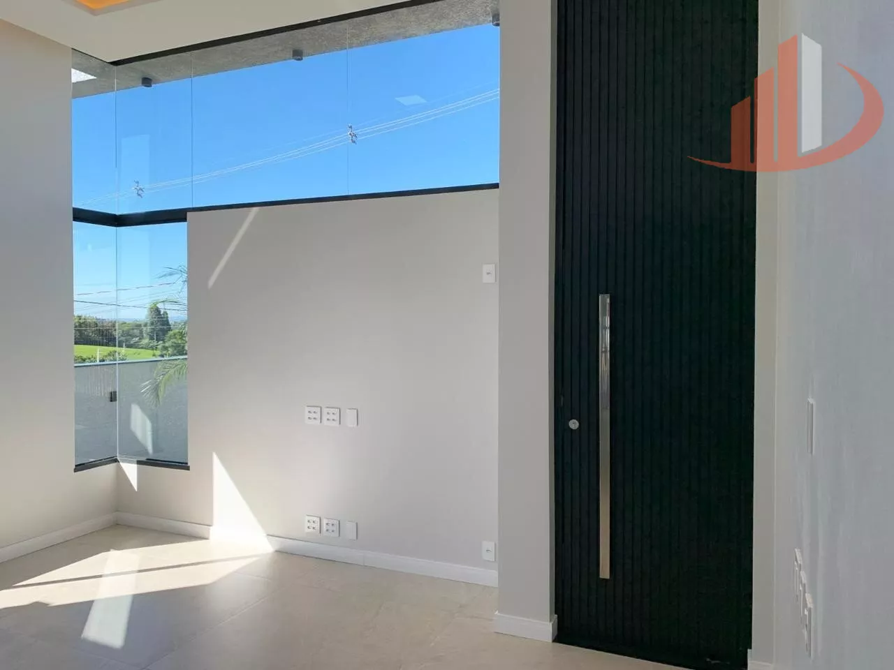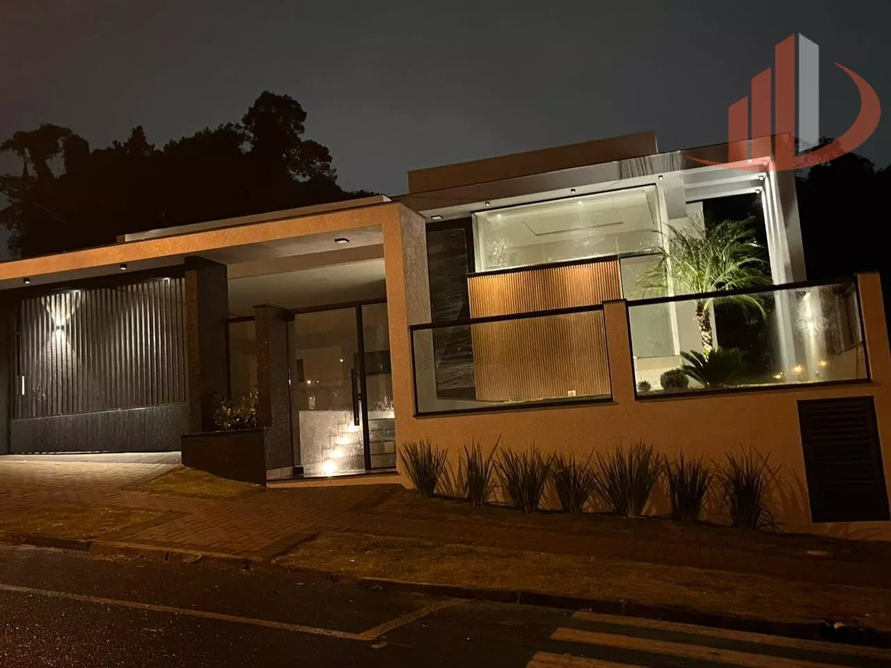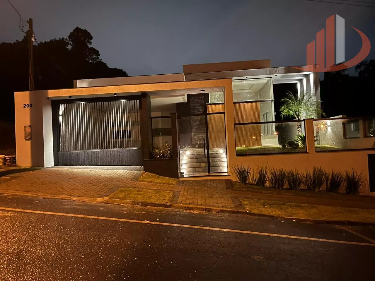 -Portão da garagem em aluminio com bandeira em ACM.