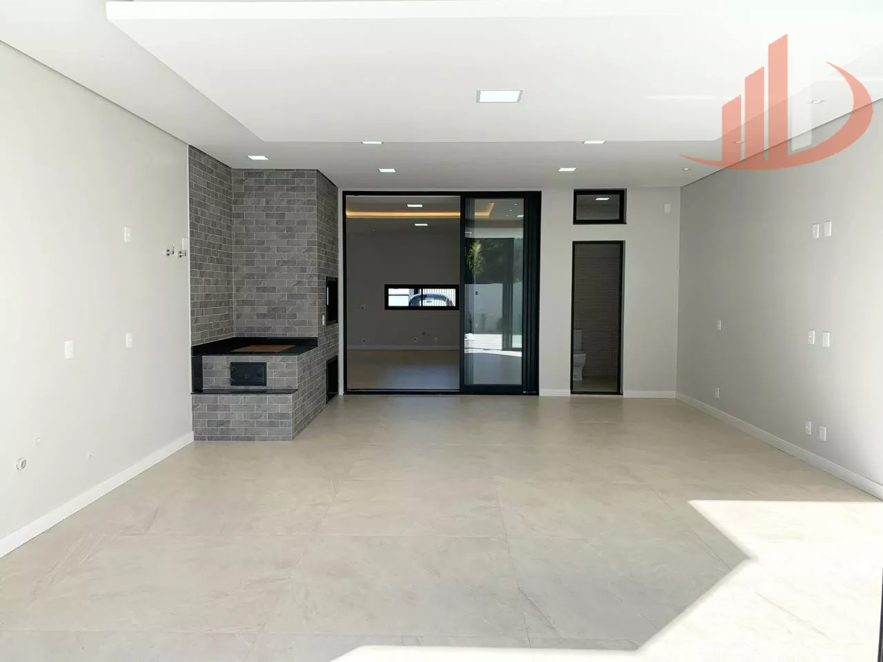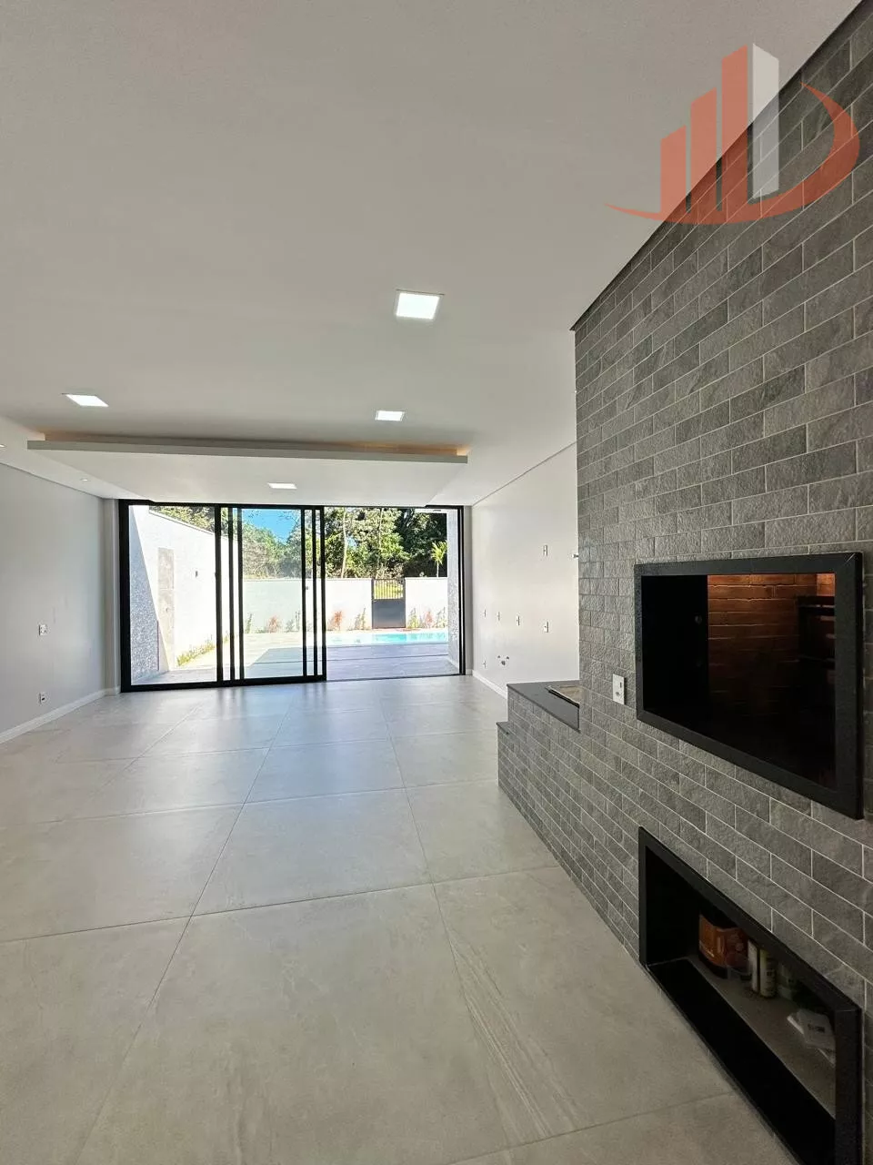 -Churrasqueira e Jipão revestidos com porcelanato Portinari e pedra São Gabriel.