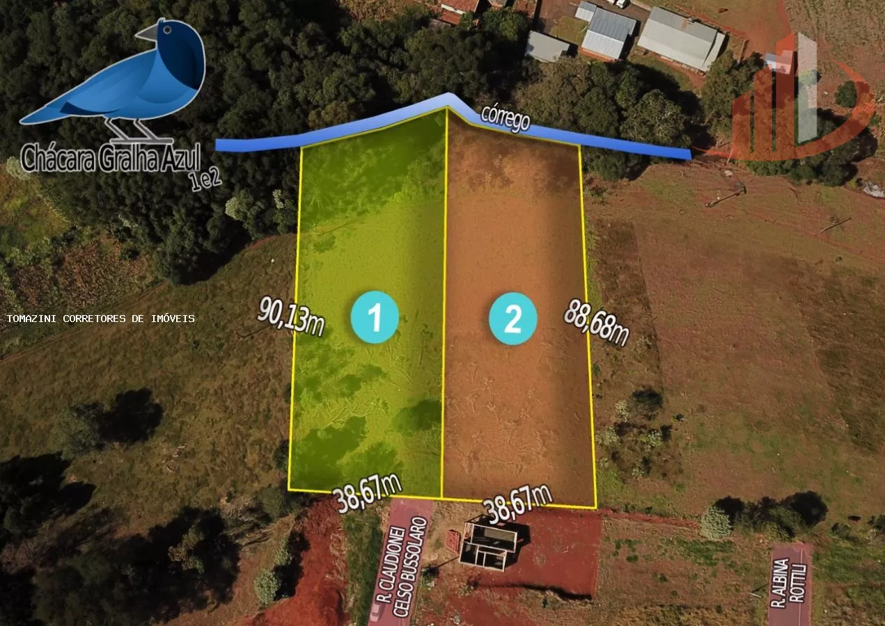 Chácara para Venda no bairro Gralha Azul, localizado na cidade de Pato Branco PR, ponto de referência praticamente dentro do período urbano. CHÁCARA GRALHA AZUL - I e II Ótima localização, praticamente dentro do perímetro urbano Mais de 3.370 m cada Córrego com água em abundância Área de mata nativa as margens do córrego Acessibilidade de água e luz Local de fácil acesso, asfalto até na entrada da chácara Valor do Imóvel R$ 360.000,00, (cada) Estudamos seu veículo ou imóvel como parte do pagamento e opção de financiamento próprio.
