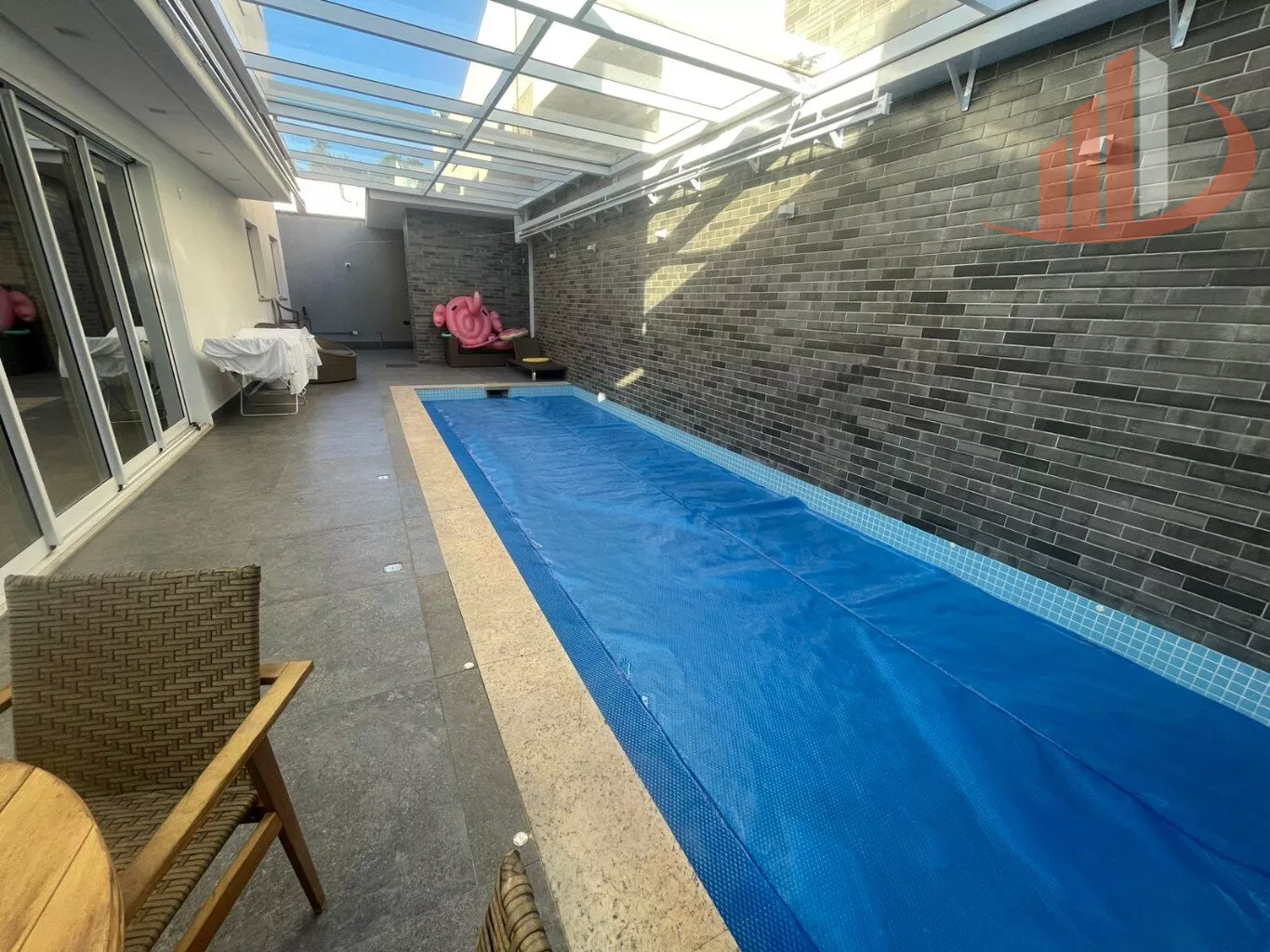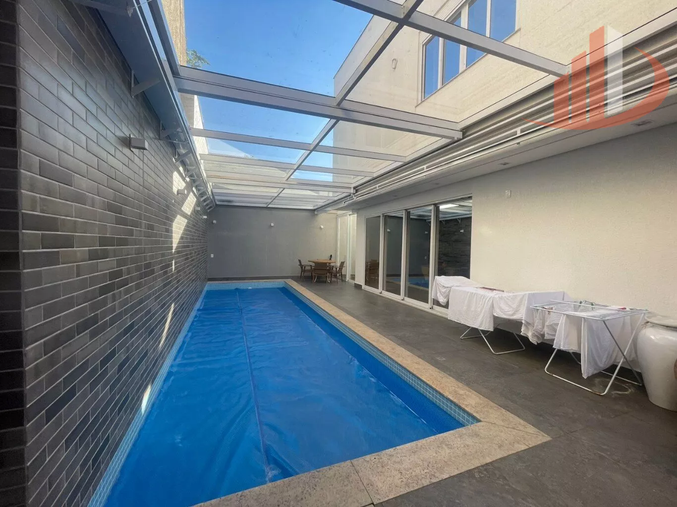 A casa está 100% mobiliada e pronta para você mudar. A lavanderia é ampla e em cômodo independente. No exterior, uma piscina aquecida com teto retrátil promete diversão em todas as estações, com um banheiro exclusivo para sua comodidade.
