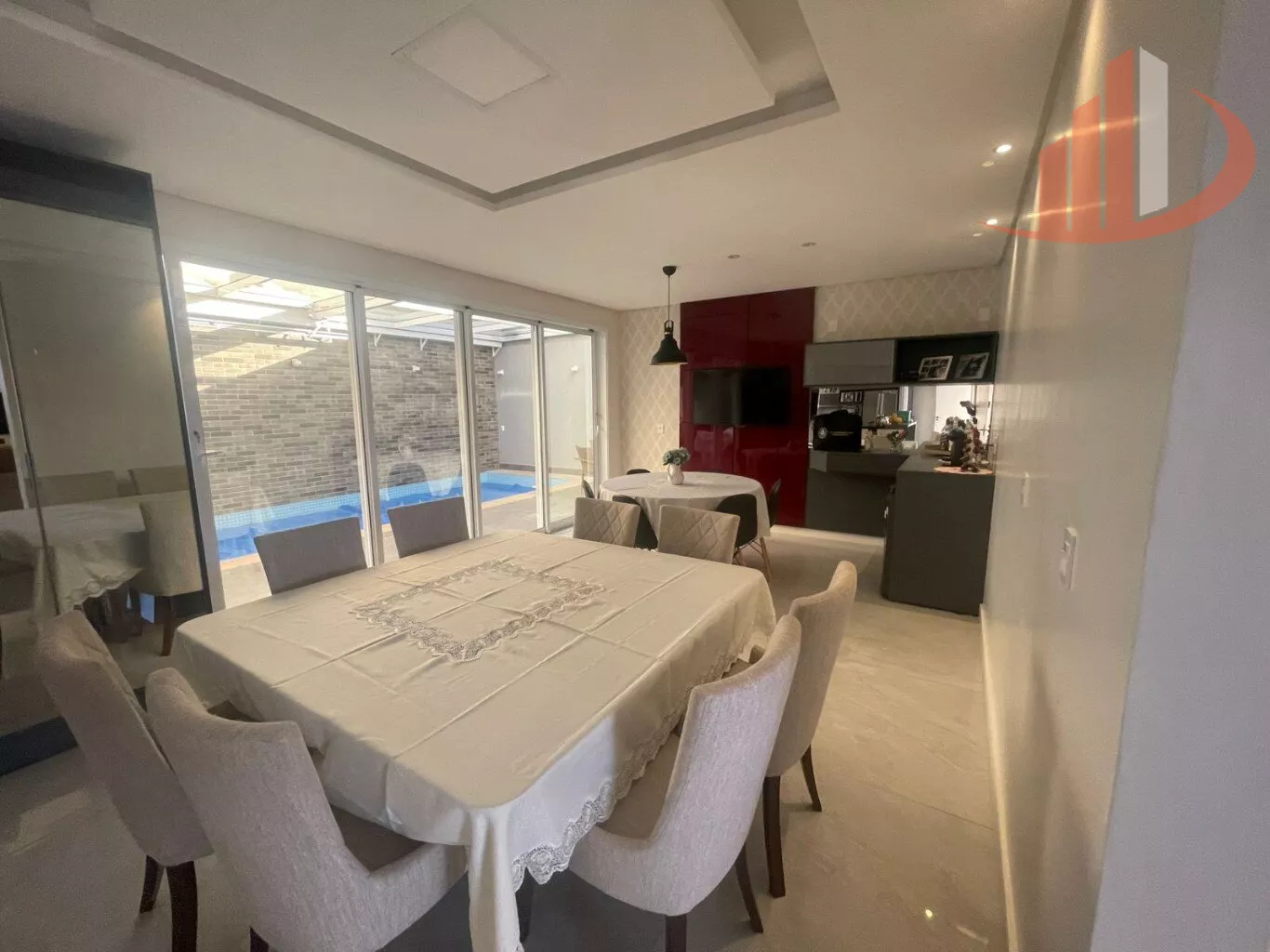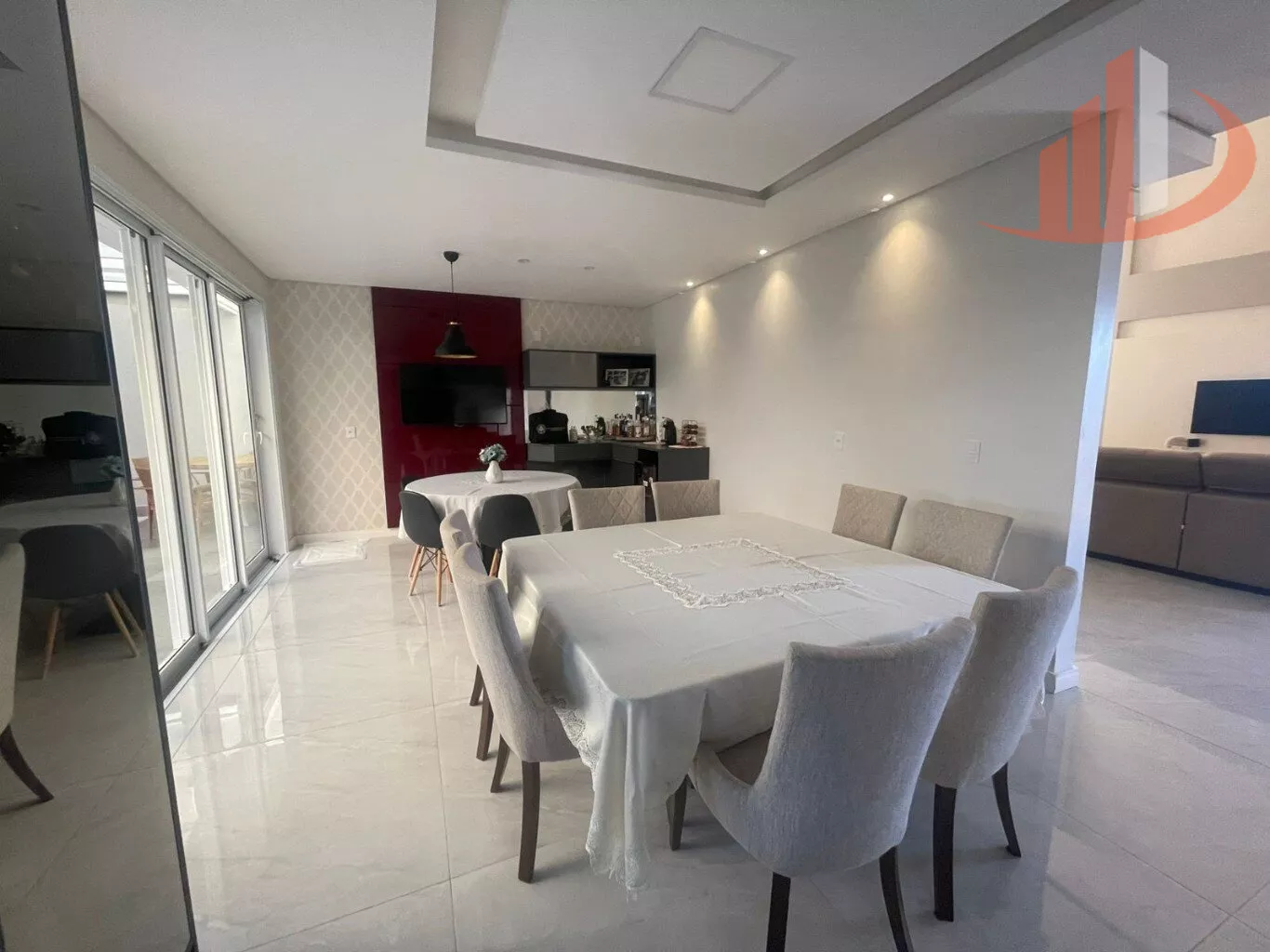 Com 300m² de área construída em um terreno de 390m², este imóvel foi projetado para impressionar. Desfrute de ambientes amplos e sofisticados, com móveis Dimare/Marel que conferem um toque de requinte. A sala de estar com pé direito duplo e um imponente lustre pendente dão as boas-vindas.