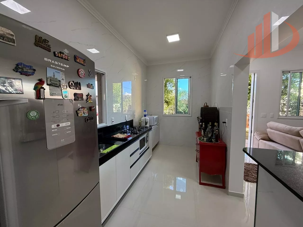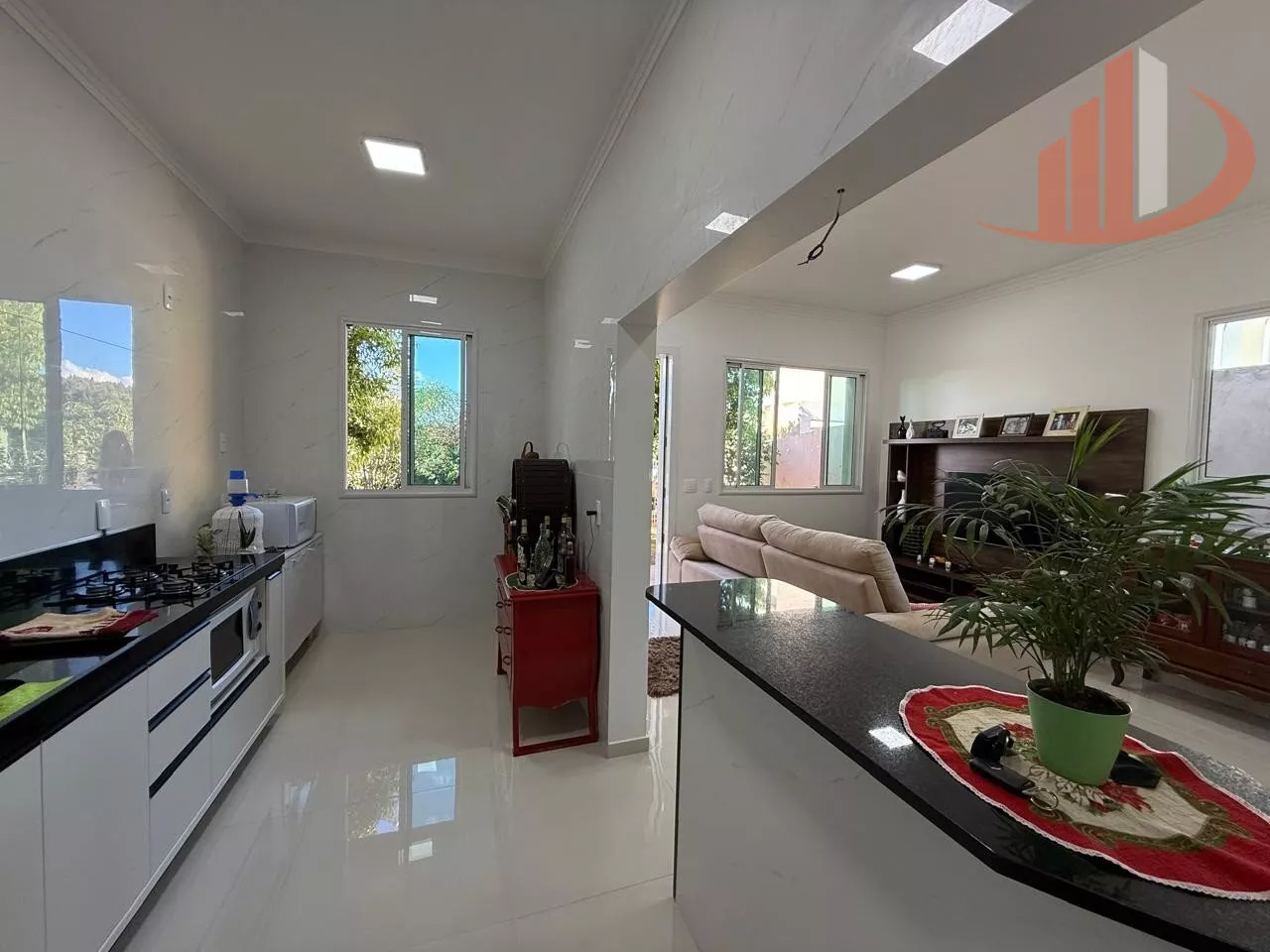 A iluminação interna é toda em LED, gerando economia e um ambiente agradável. Desfrute do conforto do aquecimento de água a gás em toda a casa, alimentado por uma caixa d'água de 1000L. As esquadrias de alumínio oferecem durabilidade e um toque moderno.